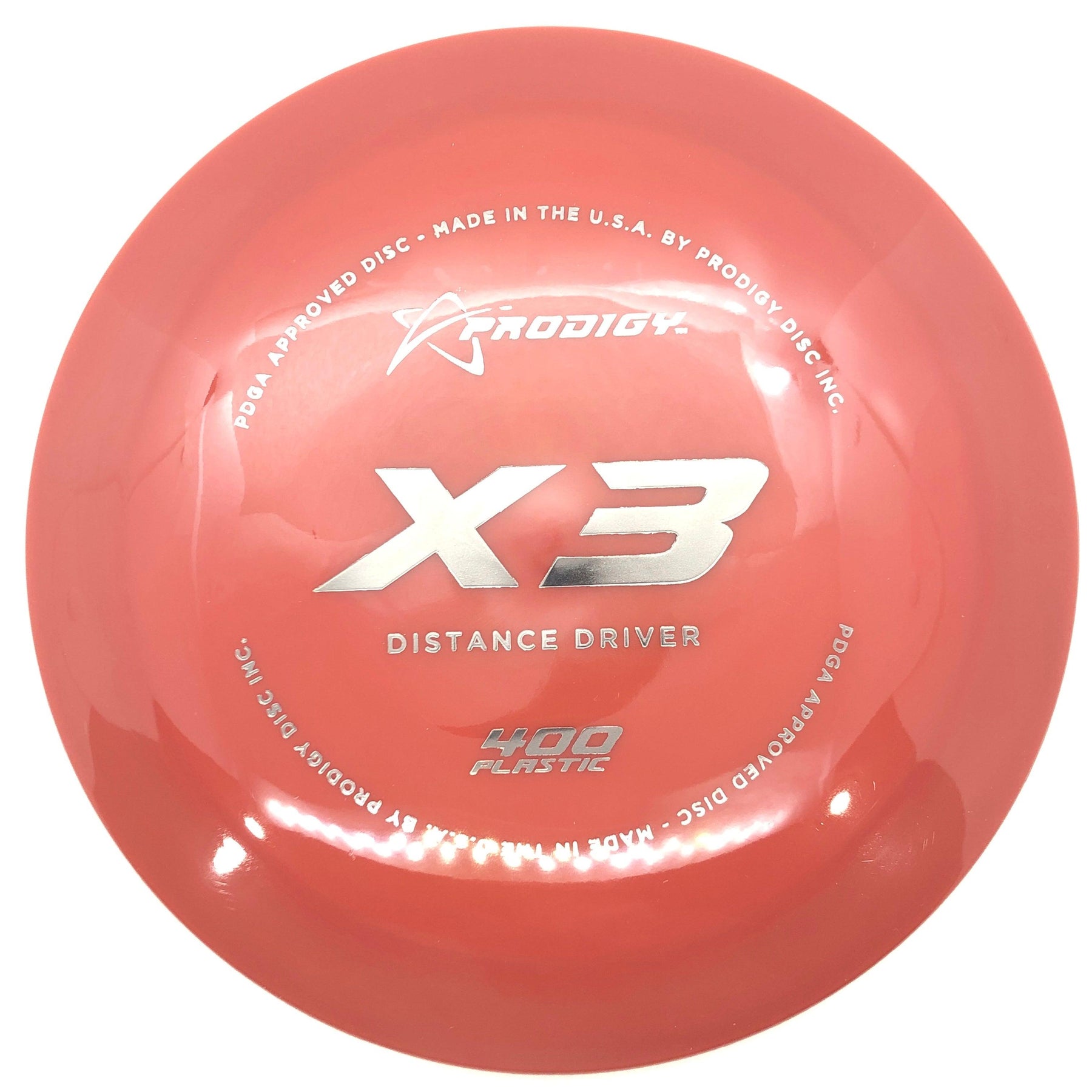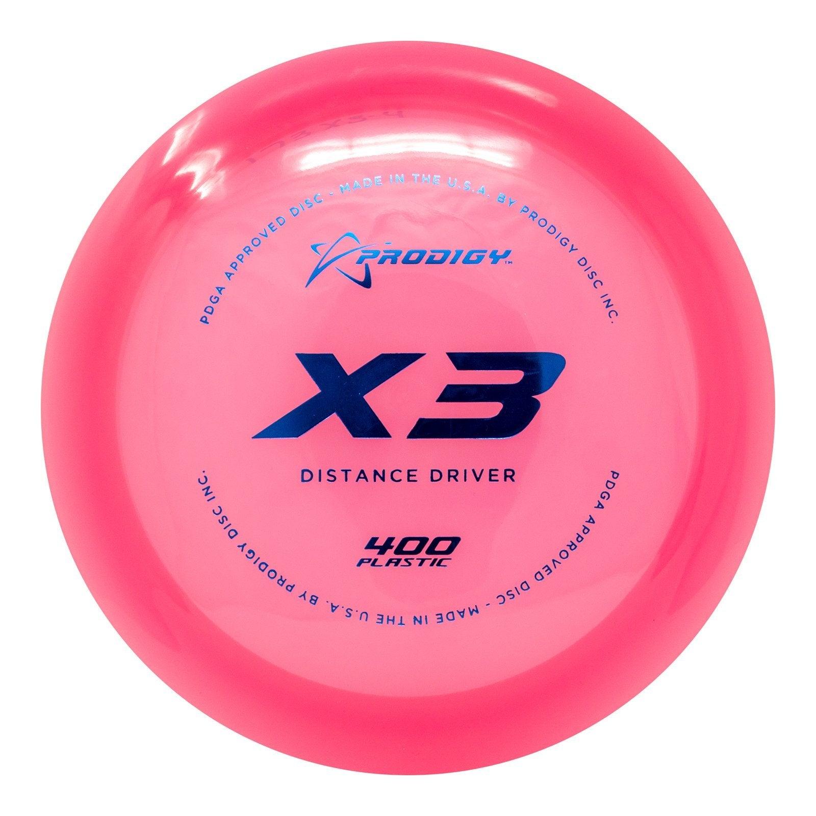 The Prodigy Disc X3 is a consistent, very long flying, slightly overstable distance driver designed for all skill levels. The X3 is a great choice for any player looking to throw long, fast, and dependable drives. The X3 is slightly less stable than the X2, giving it a longer glide period in the middle of the flight path, and a softer left to right finish. The X3 matches the X1 and X2 in consistency but exceeds in turn and glide.