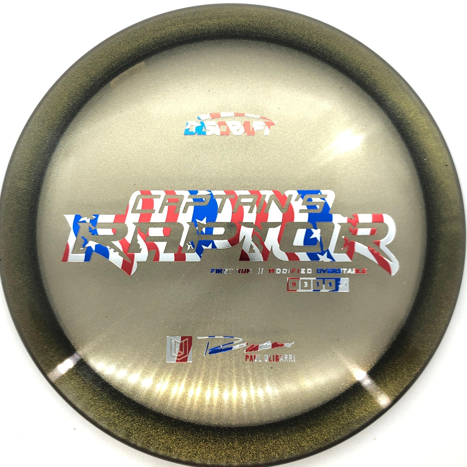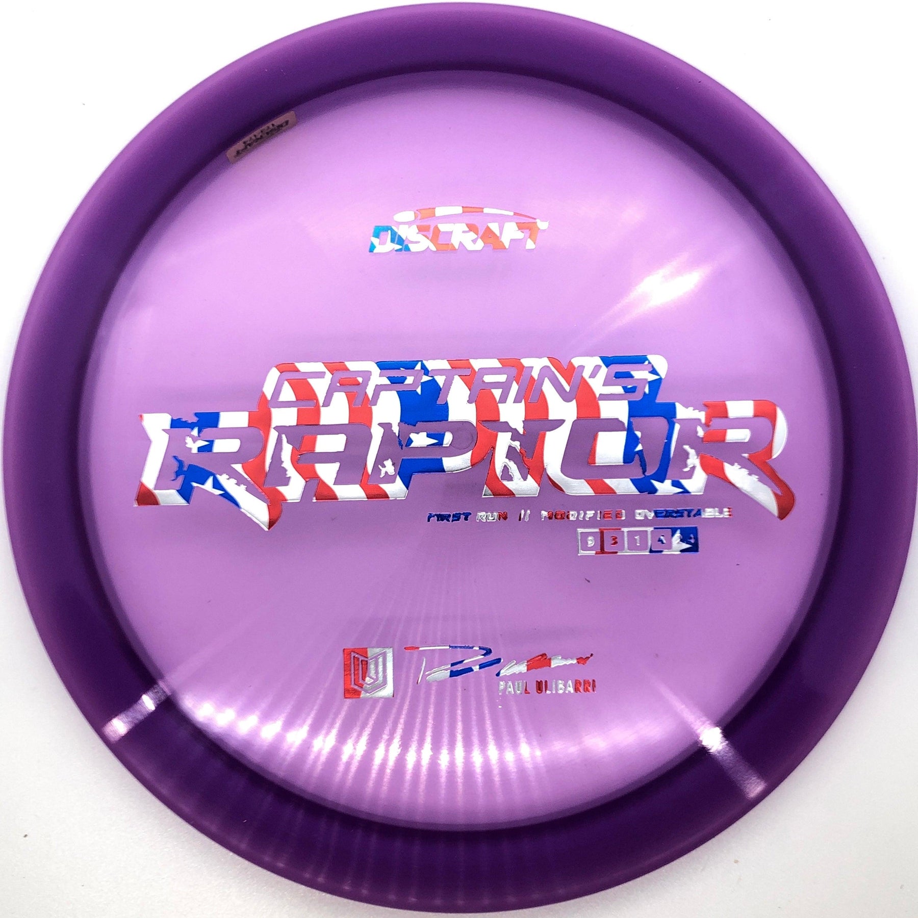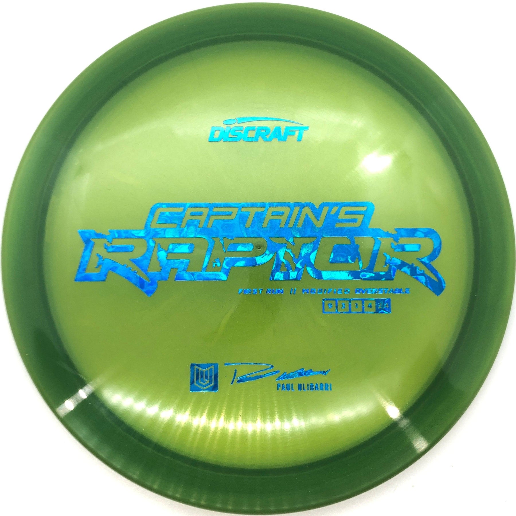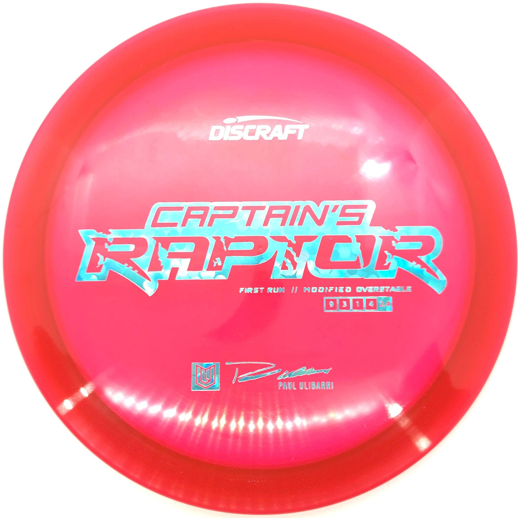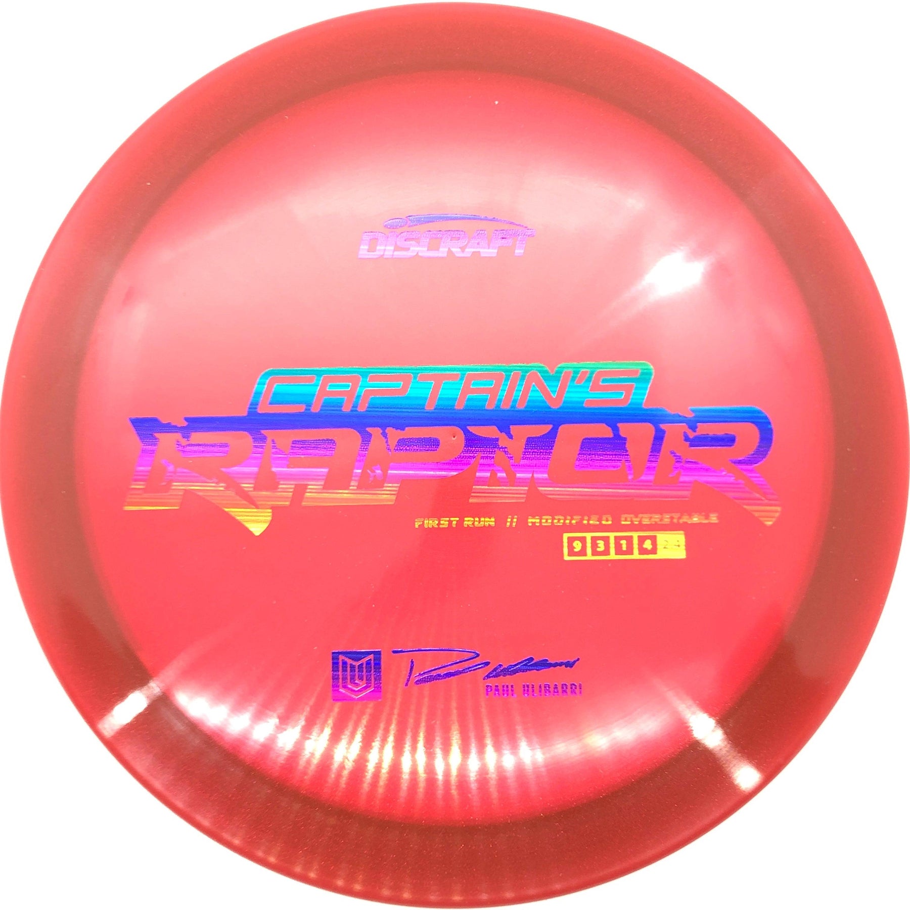 The Captain's Raptor is a modified-overstable Discraft Raptor ran in Special Blend Z plastic. This disc was inspired by Team Discraft Captain, Paul Ulibarri.